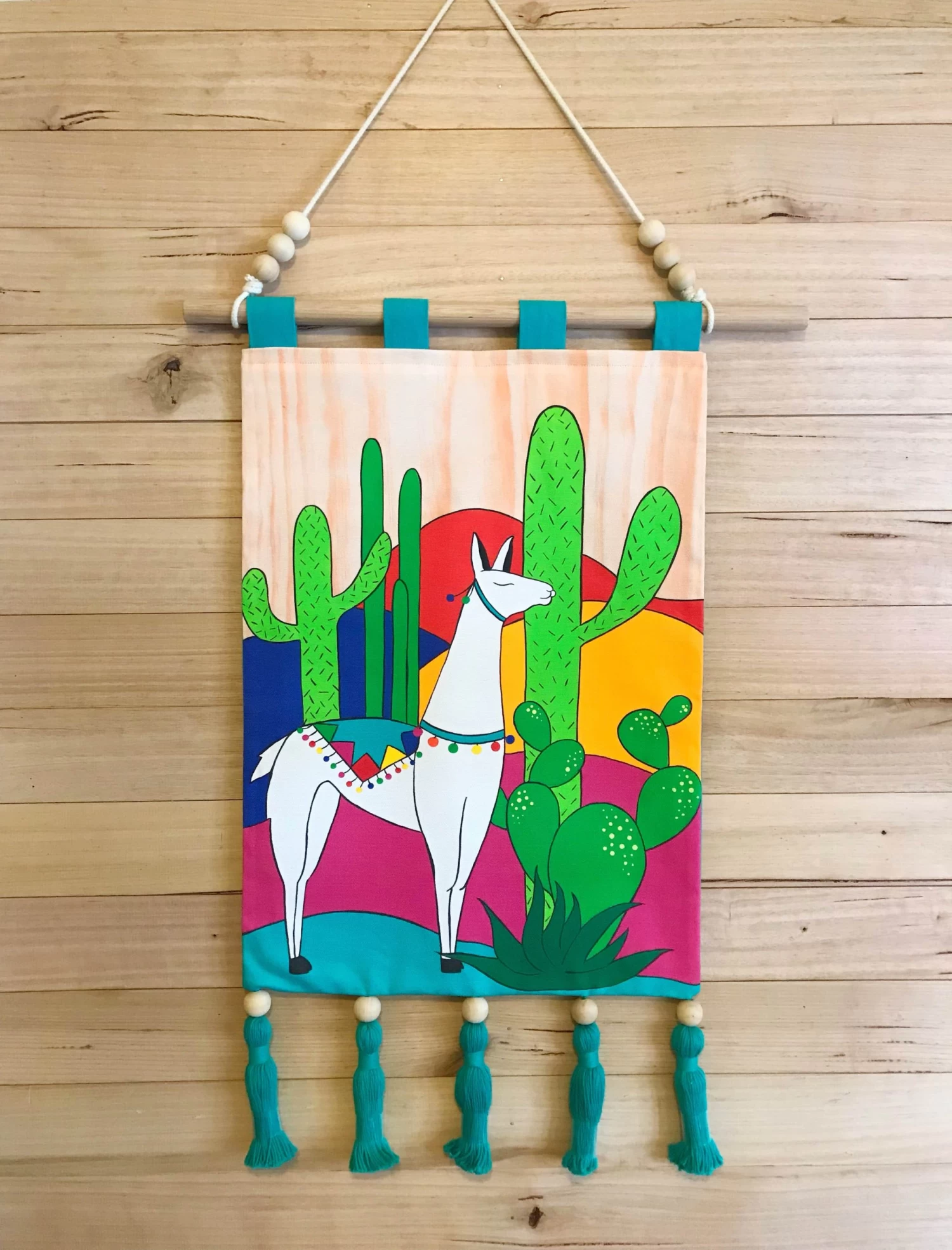 Bring an essence of South America into your home with this beautiful Llama wall hanging. Escape for a while and imagine yourself in a beautiful exotic Latin American landscape.