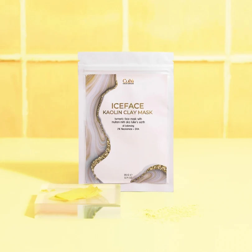 Hey, you! Yeah, that’s right! Listen up. Take your skin to a whole new level of cool with Ice Face (Ice cold, get it!?) Kaolin Clay Mask. This turmeric face mask with multani mitti aka fuller’s earth is packed with Turmeric – one of the most potent adaptogens (a natural choice for balanced response to stress for demands of modern life) which has been used in Ayurvedic rituals for centuries and help brighten the skin up no matter how sun-starved you are. 2% niacinamide takes care of major icky stuff like acne and breakouts, shrinks the pores and evens out skin tone without drying you out along with coconut milk powder.