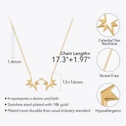 Fashion Necklace The only Celestial Star Enfashion specializes in designing and producing jewellery for everyone! Offering a wide range of styles, in plated gold, Stainless steel and silver shop necklaces, bracelets, earrings, rings, made from the finest quality, craftsmanship, and unique designs. With a signature style or aesthetic that sets it apart from other brands. Whether you’re looking for a timeless piece to wear every day or a special piece to add to your collection, Enfashion has something to offer for everyone. Swipe for length, and composition of your item. swipe image left for details + sizing.