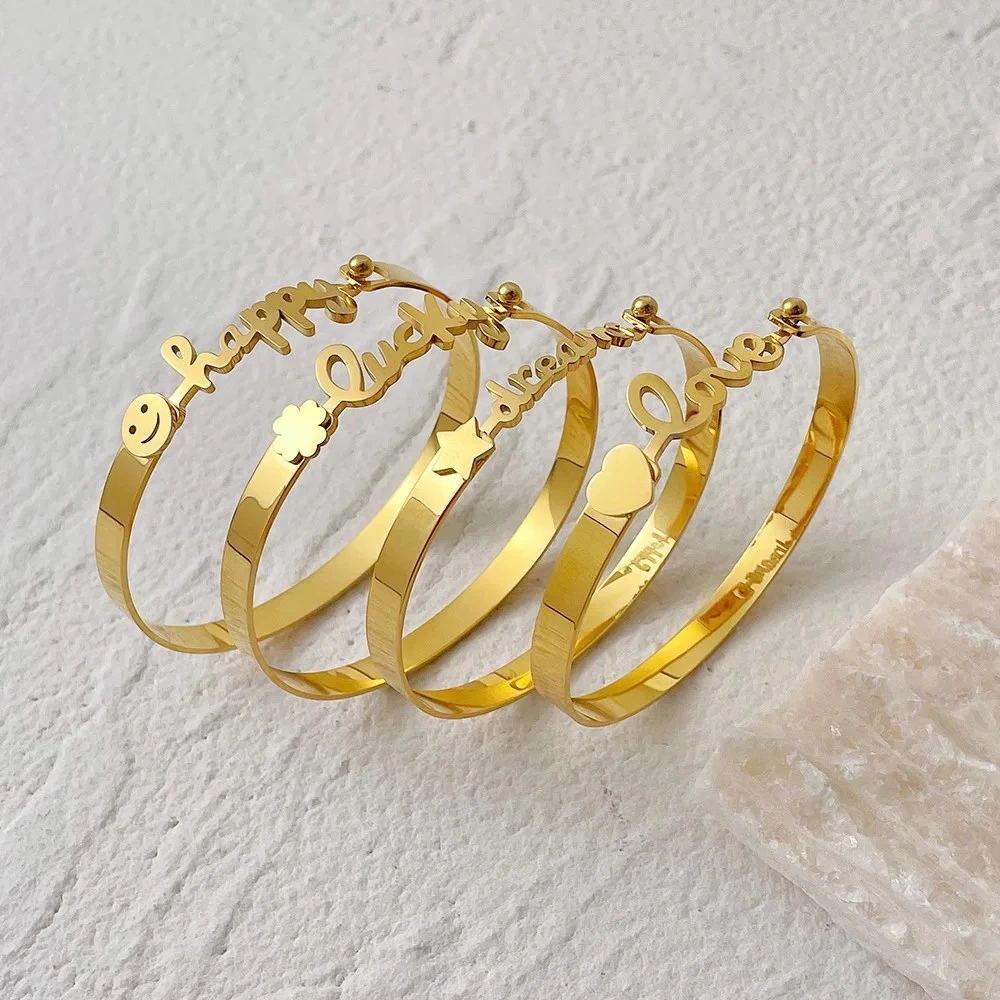 Trendy and Fashionable: With its concise lines outlining letter words, this bangle effortlessly blends modern trends with timeless elegance. The trendy design makes it a versatile accessory that can elevate any outfit, adding a touch of sophistication to your style.