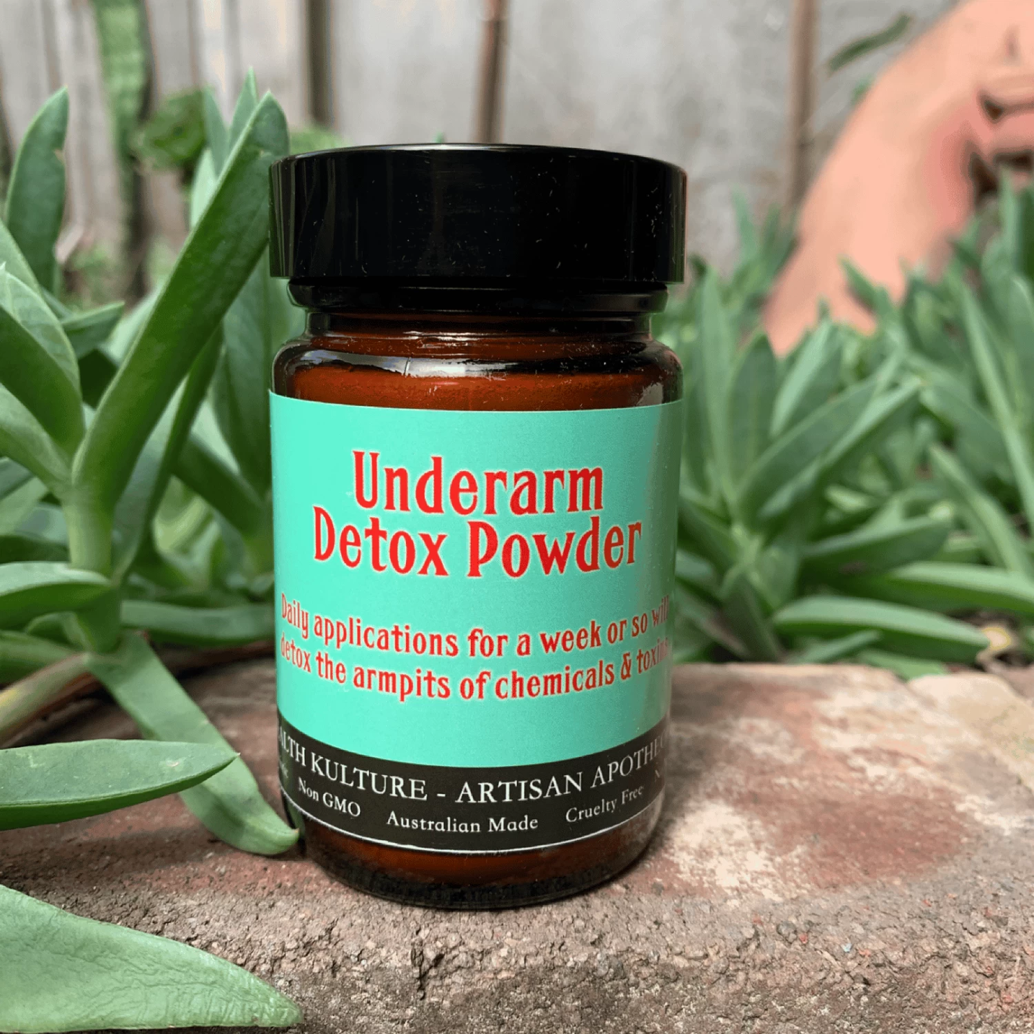 An underarm detox really is essential if you’re changing over from a conventional deodorant to our deodorant powder. Simply mix 2 parts powder with 1 part apple cider vinegar and apply daily for a week or so. Use a non-metal bowl and spoon as metals will deactivate the healing strength of the clays. You will know when to finish the detox as there will be no more odour or irritation and your armpits will be like new again, and, you will be healthier.