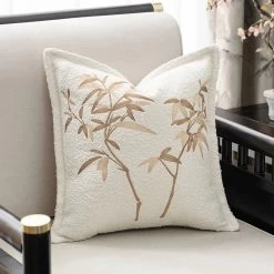 Meticulously crafted from premium poly-cotton embroidery fabric, this cover guarantees durability and a sumptuous texture. The intricate leaf pattern, highlighted in contrasting ivory and black, adds an artistic flair to any room. Its front boasts meticulous embroidery, while the back features a plain color, granting you the flexibility to experiment with different decor styles.