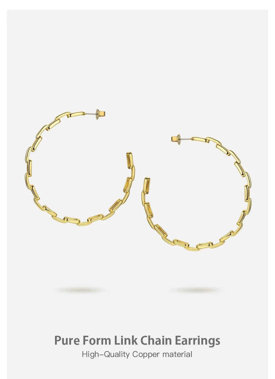 Gift Idea Pure Form Link Chain Hoop Earrings for Women Big Circle Hoops Gold