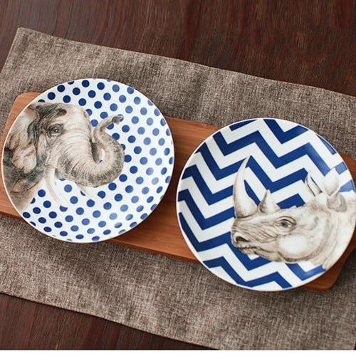 - Quantity: The set includes 4 pieces, featuring one ostrich, one elephant, one giraffe, and one rhino plate.