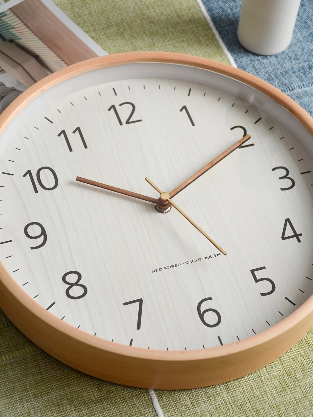 The clockâs minimalist design, inspired by Scandinavian style, features a clean and simple face with bold black numbers and thin black hands that provide easy visibility even from a distance. Its silent quartz movement ensures a quiet and peaceful environment, making it a perfect addition to any bedroom or office space.