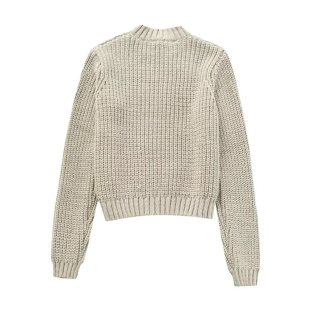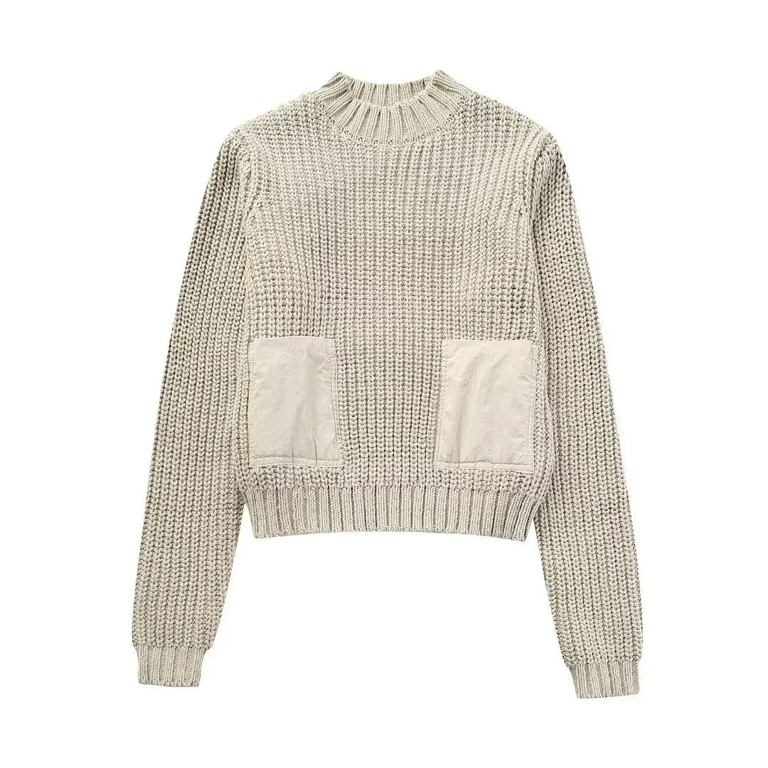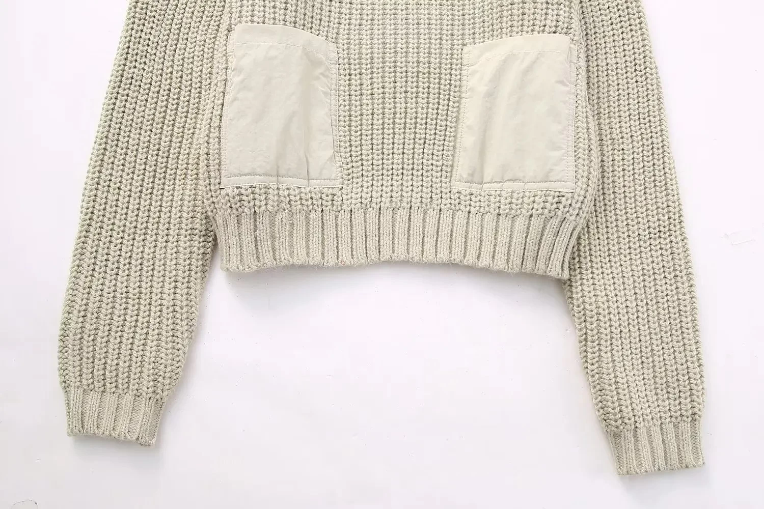 Women’s Army Inspo Short Knit Ivory Round Neck Jumper With Side Pockets