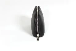 The make-up bag is equipped with a silver zip that stretches all the way across the top, allowing for easy opening and closing. This design feature not only provides convenience but also enables you to have a clear view of the contents inside, making it even easier to locate specific items.