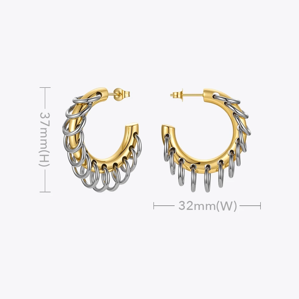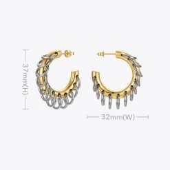 Women’s Punk Chain Hoop Earrings Enfashion specializes in designing and producing jewellery for everyone! Offering a wide range of styles, in plated gold, Stainless steel and silver shop necklaces, bracelets, earrings, rings, made from the finest quality, craftsmanship, and unique designs. With a signature style or aesthetic that sets it apart from other brands. Whether you’re looking for a timeless piece to wear every day or a special piece to add to your collection, Enfashion has something to offer for everyone. Swipe for length, and composition of your item. Size 32mm(W) x 37mm(H)