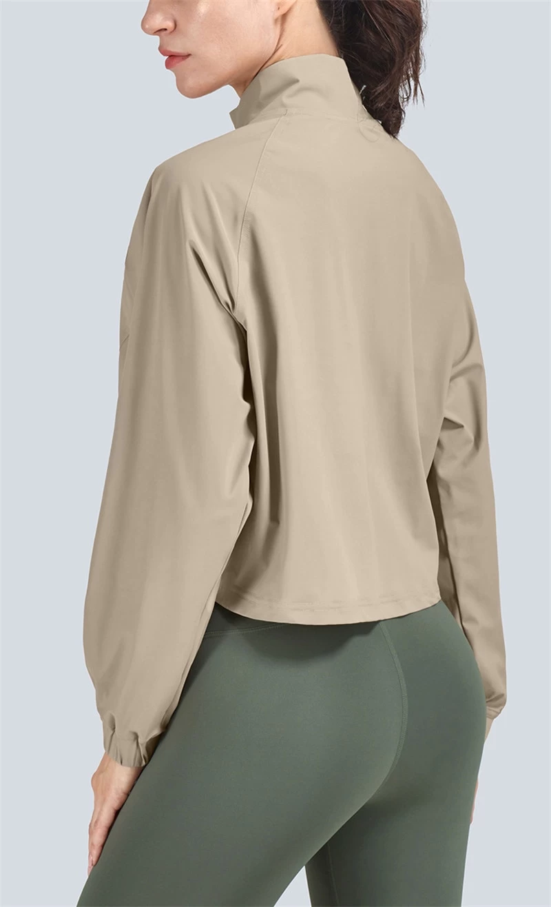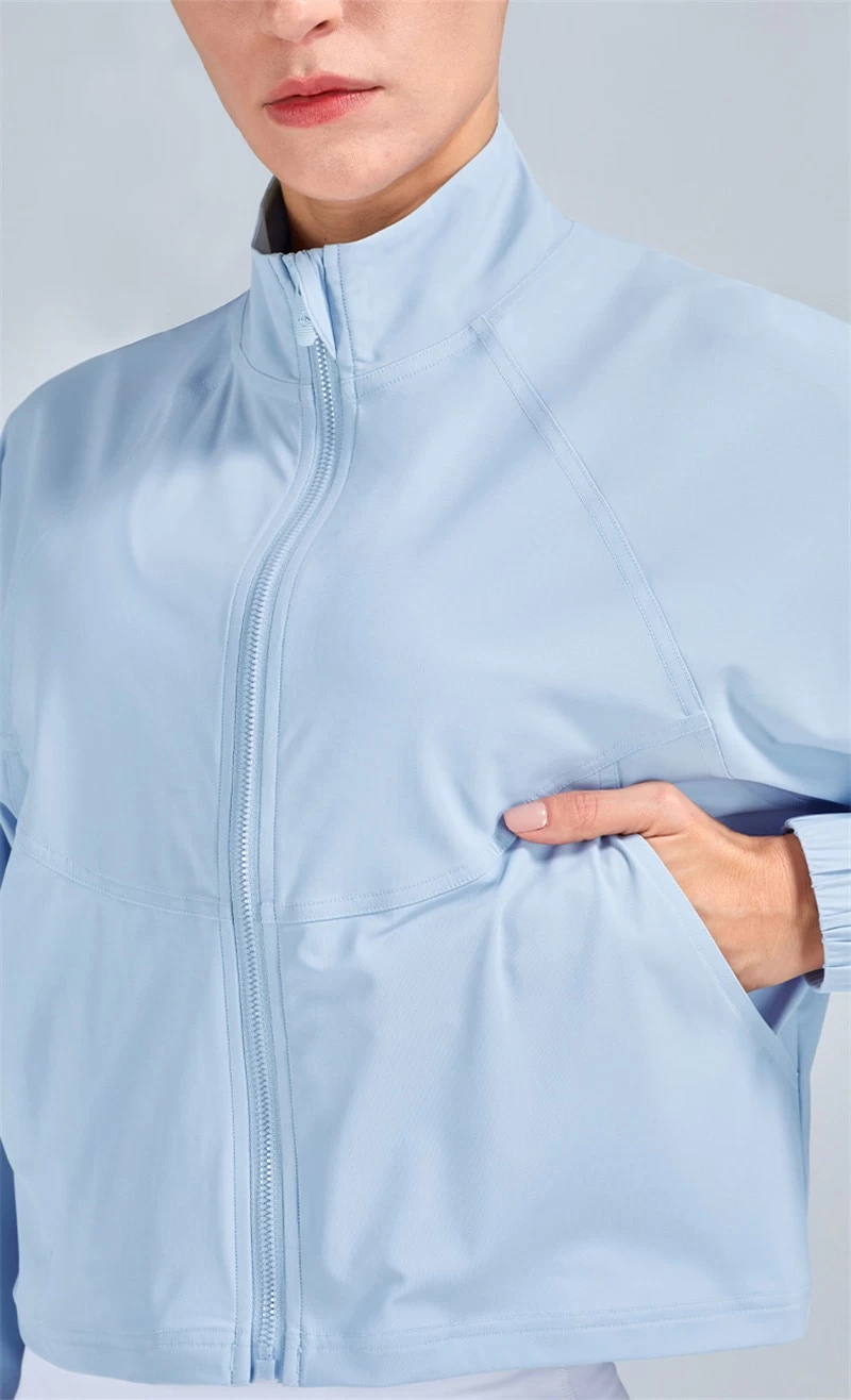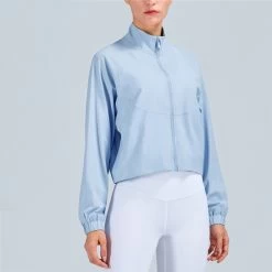 Women’s Windbreaker Sport Jacket Quick-drying breathable workout or gym clothing made from 77% nylon+23% spandex.