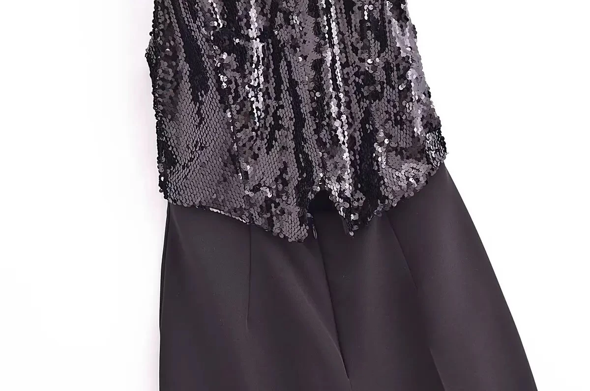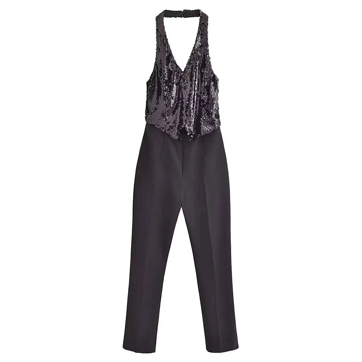 Make a striking entrance with our Women’s Beaded Halter Sleeveless Black Jumpsuit. Designed to command attention, this jumpsuit features a stunning beaded halter neckline that adds an elegant touch to the sleek black silhouette. The sleeveless design and flattering fit make it perfect for any occasion, from cocktail parties to formal events. The wide-leg pants elongate the figure, while the halter neckline frames the shoulders beautifully. Whether you’re dancing the night away or making a statement at a special event, this jumpsuit promises to elevate your style with its timeless sophistication and modern flair.