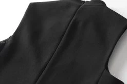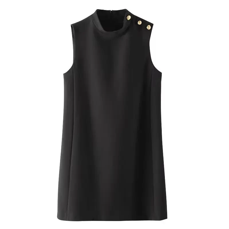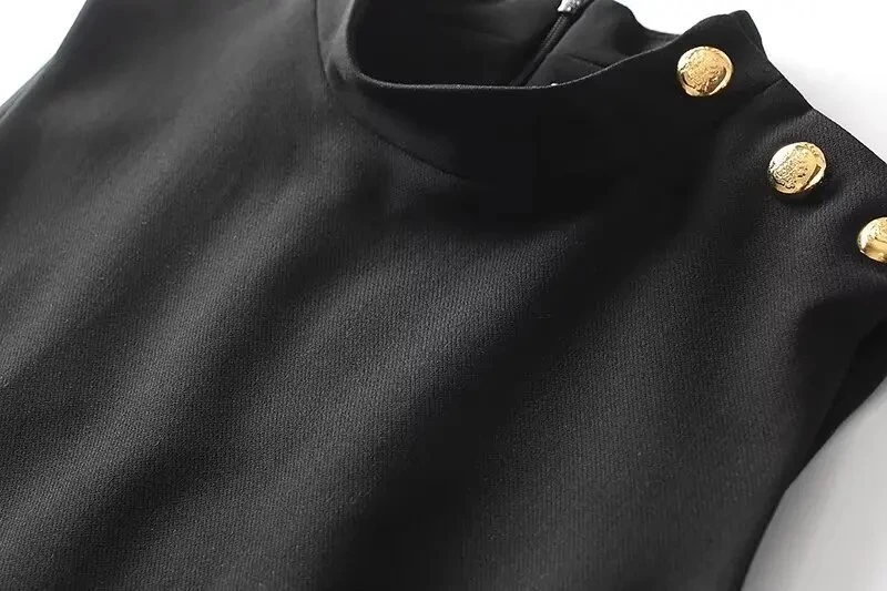 Womens Black Buckle Series Straight Cut Gold Button Detail 50’s Glam Mini Dress