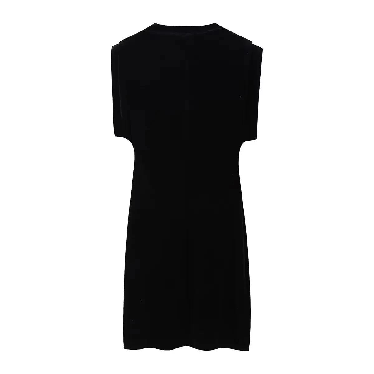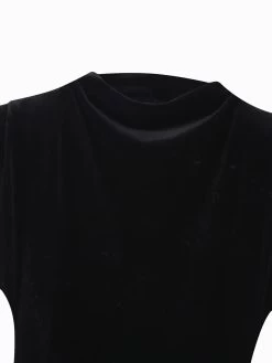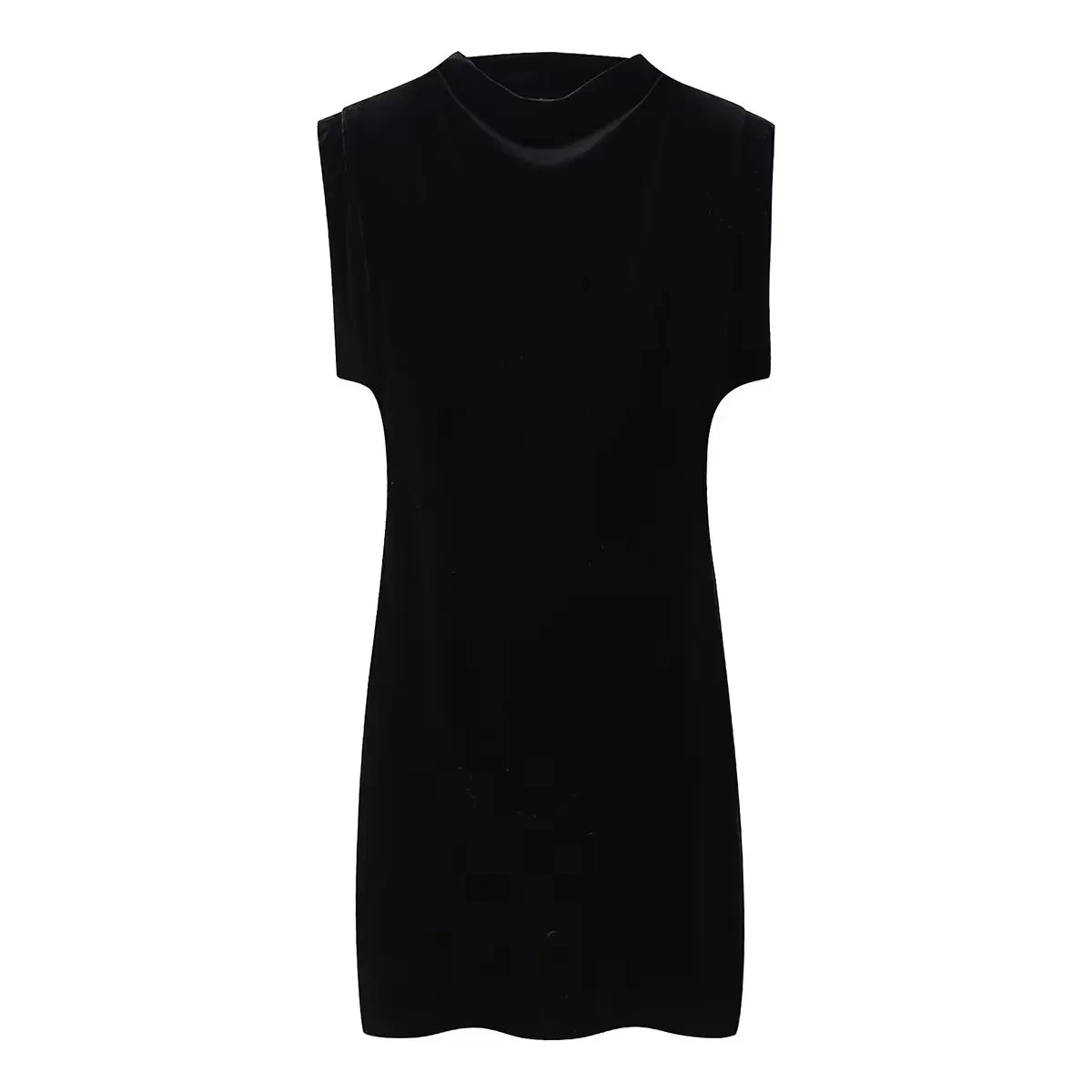 Womens Black Velvet Slim Sleeveless Evening Mini Dress