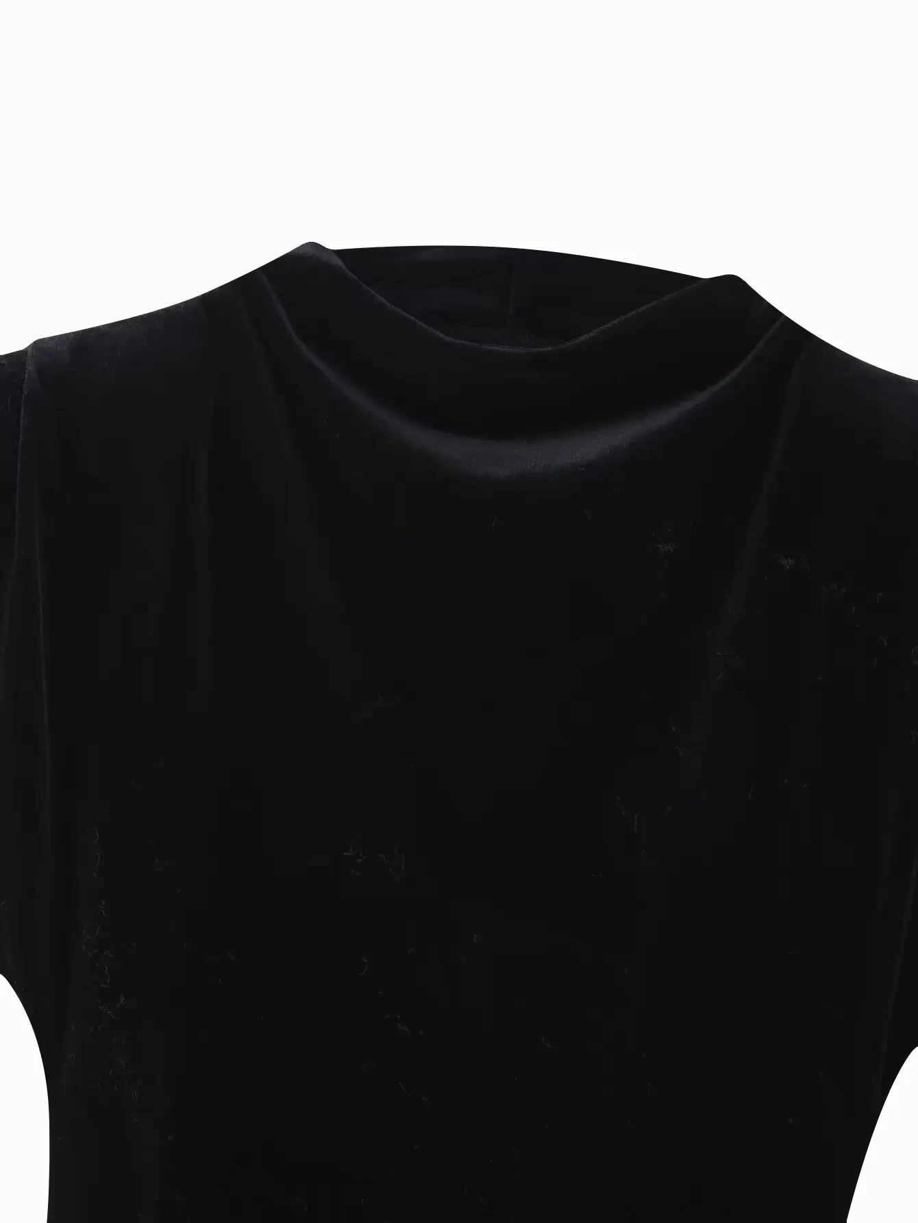 Make a bold statement with our Women’s Black Velvet Slim Sleeveless Evening Mini Dress, featuring elegant shoulder pads for a touch of drama. Crafted from luxurious velvet fabric, this dress exudes sophistication and glamour, perfect for evening events or special occasions. The slim silhouette hugs your curves in all the right places, while the sleeveless design adds a modern flair. The addition of shoulder pads adds structure and definition to your look, ensuring you stand out from the crowd with confidence. Whether you’re attending a cocktail party or a formal dinner, this mini dress promises to turn heads and leave a lasting impression.