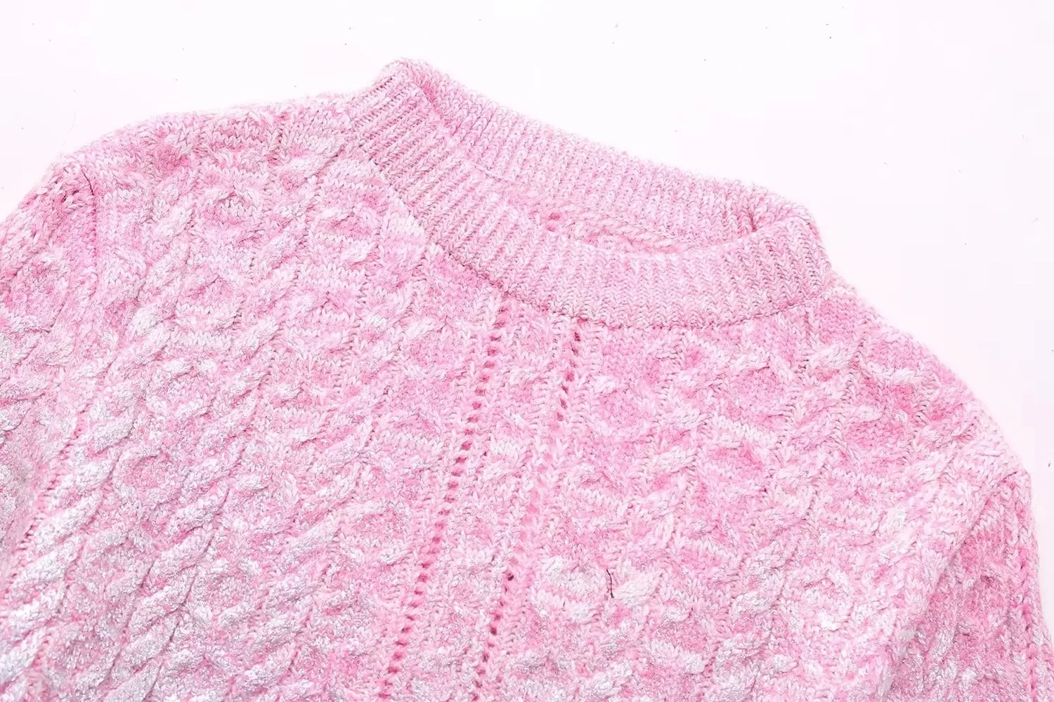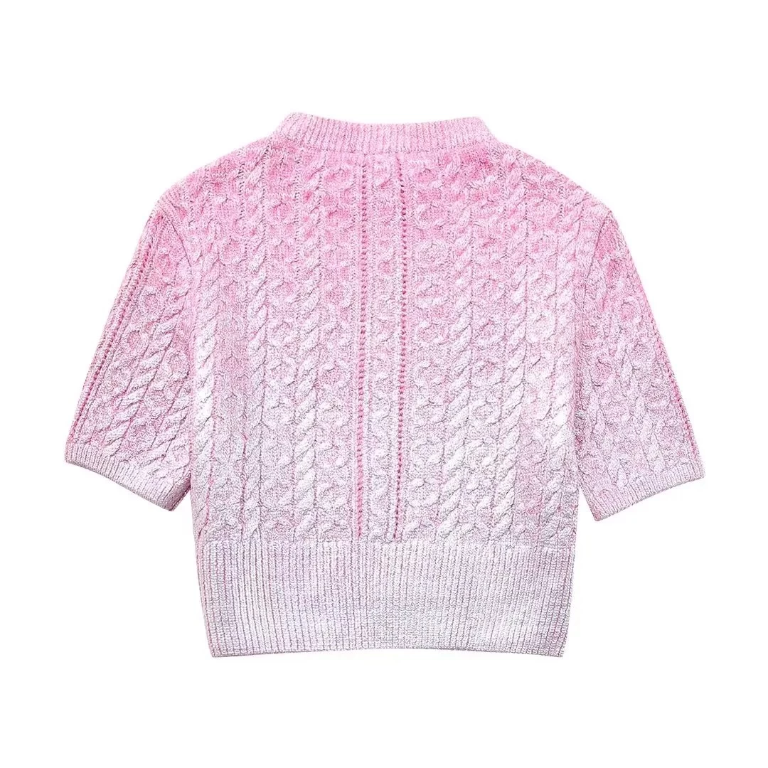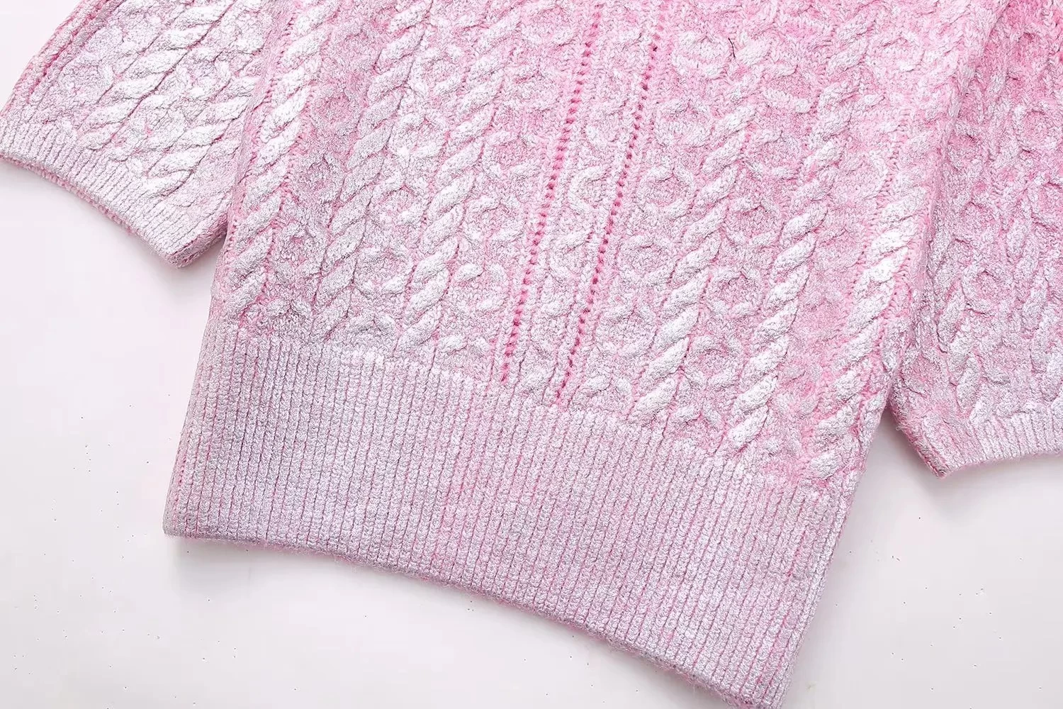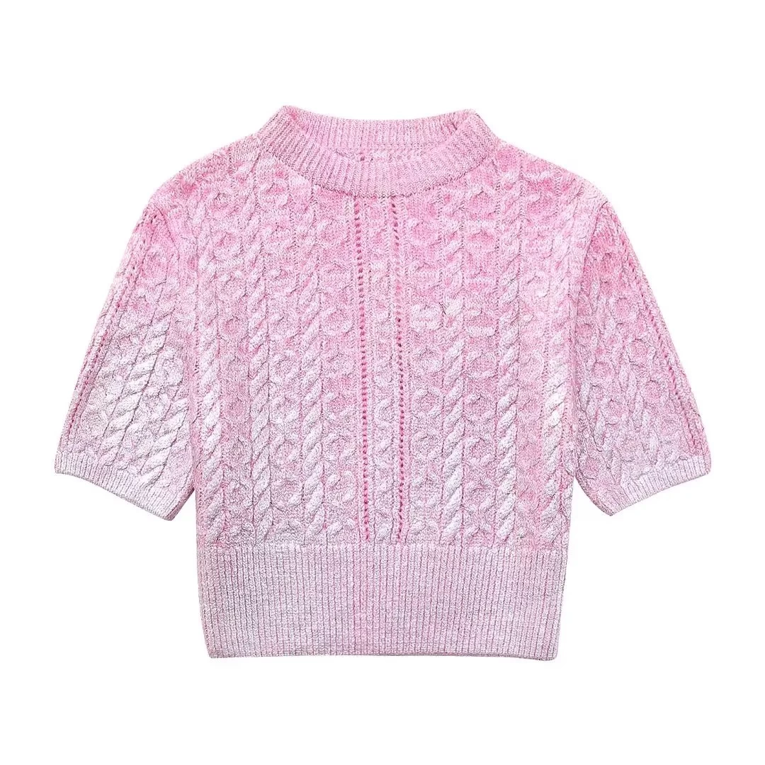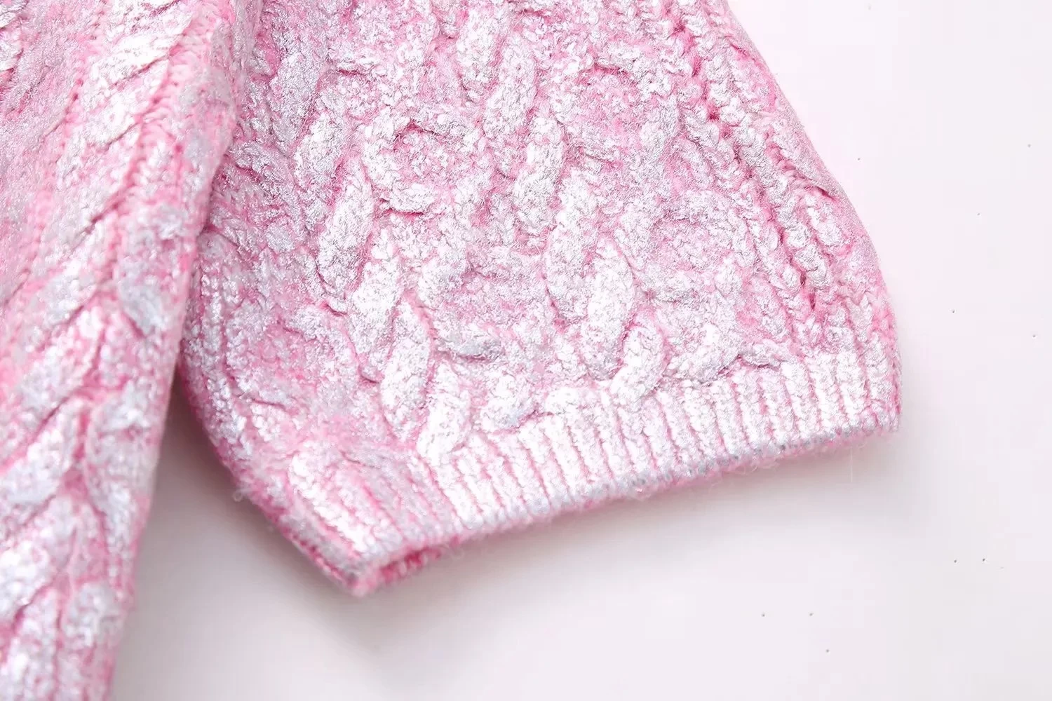 Womens Eight-length Metallic Pink Sweetheart Knit Round Neck Jumper