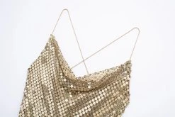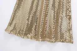 Shimmer and shine in our Women’s Gold Mesh Spaghettini Strap Backless Slim Mini Party Dress. This stunning dress is designed to make you stand out, featuring a glamorous gold mesh fabric that catches the light with every movement. The spaghettini straps and backless design add a touch of allure and sophistication, while the slim silhouette hugs your curves in all the right places. Perfect for parties, club nights, or any special occasion, this mini dress is sure to turn heads and make you feel like a star. With its eye-catching design and flattering fit, it’s guaranteed to leave a lasting impression.