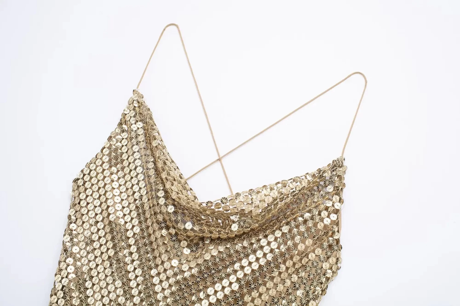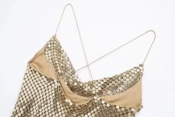 Womens Gold Mesh Spaghettini Strap Backless Slim Mini Party Dress