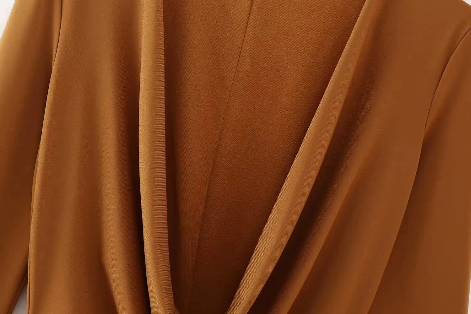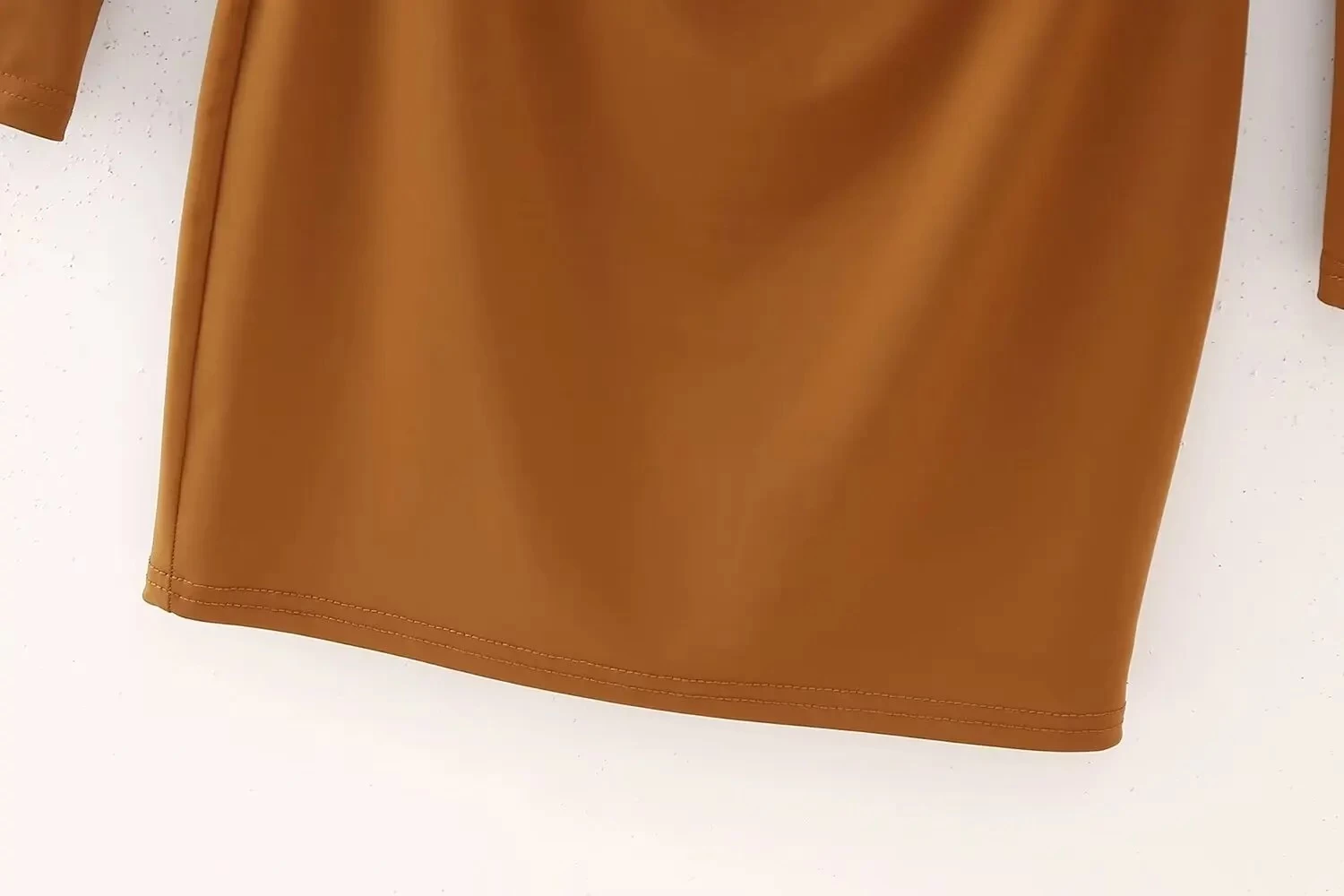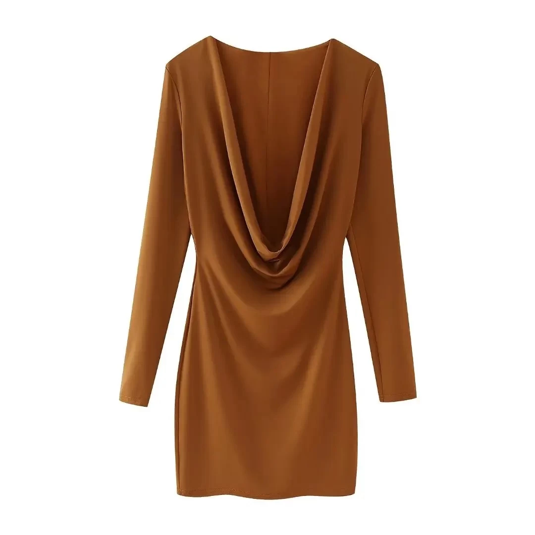 Womens Long V Long Sleeve 80’s Mini Dress In Chocolate Vintage
