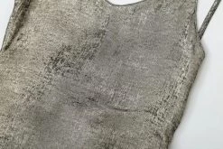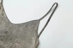 Womens Metallic Foil Thin Strap Backless Low Cut Slim Fit Mini Dress