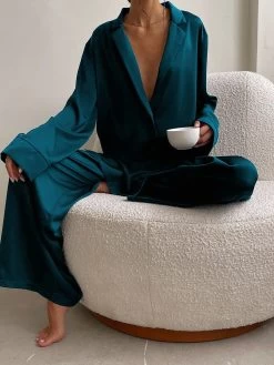 Product Name: Womenâs Satin Loose Pajama Loungewear Single Breasted Set