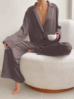 Gift Idea Womens Satin Loose Pajama Loungewear Single Breasted Set
