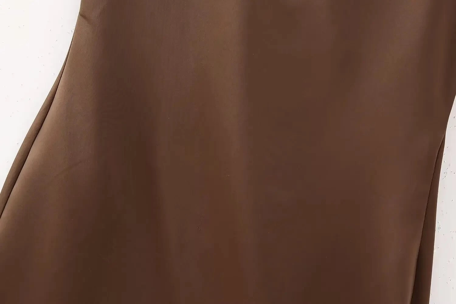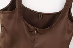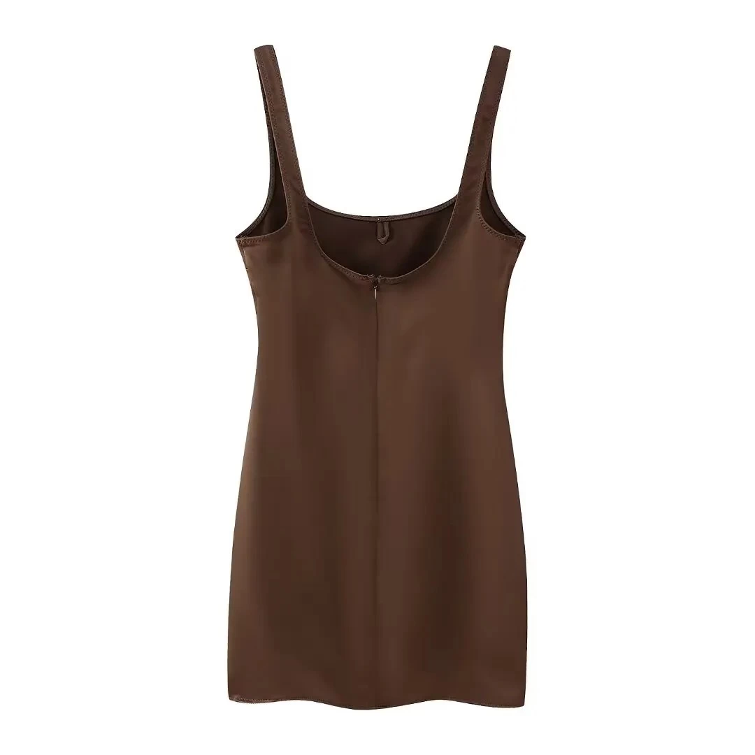 Embrace elegance and allure with our Womenâs Silk Satin Nude Slim Fit Strap Mini Dress in Chocolate. Crafted from luxurious silk satin fabric, this dress exudes sophistication and glamour. The slim fit design hugs your curves in all the right places, while the delicate spaghetti straps add a touch of femininity. The rich chocolate hue adds warmth and richness to your look, perfect for making a statement at any event. Whether youâre attending a cocktail party or a romantic dinner, this mini dress promises to elevate your style with its timeless beauty and effortless charm.