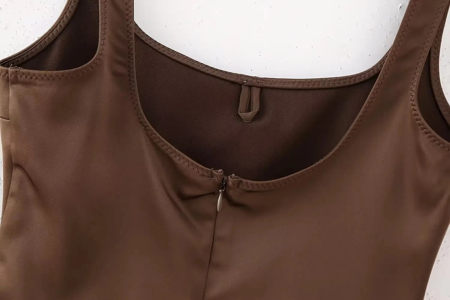 Womens Silk Satin Nude Slim Fit Strap Mini Dress In Chocolate