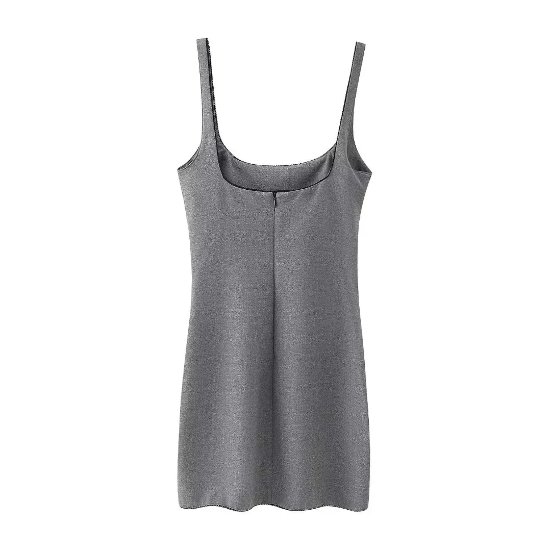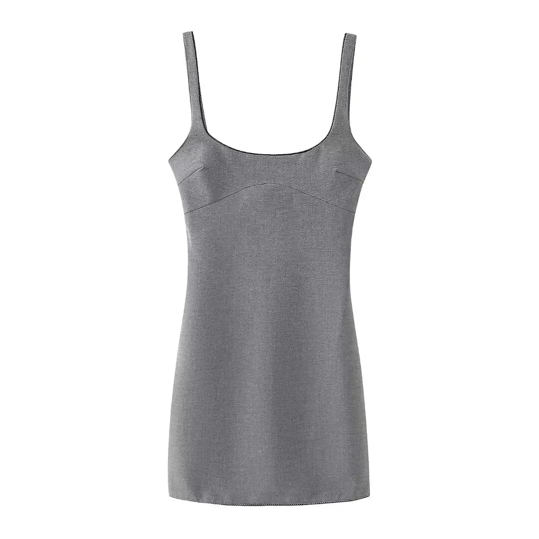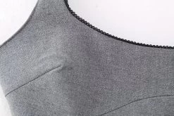 Elegance with our Women’s Silver Gray Strap Slim Fit Lace Detail Mini Dress. This captivating dress exudes sophistication, featuring delicate lace detailing that adds a touch of romance to the sleek silhouette. The slim fit design hugs your curves, while the slender straps provide support and style. Crafted with meticulous attention to detail, this mini dress is perfect for both formal events and nights out on the town. Whether you’re attending a cocktail party or a special occasion, this dress is sure to make you feel confident and glamorous.