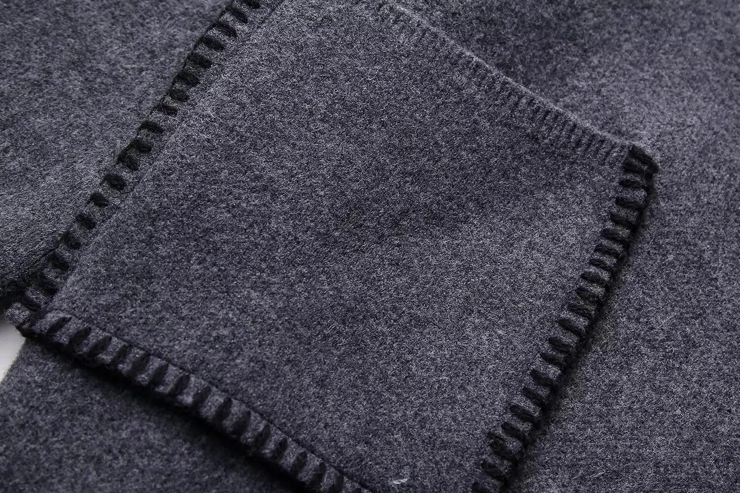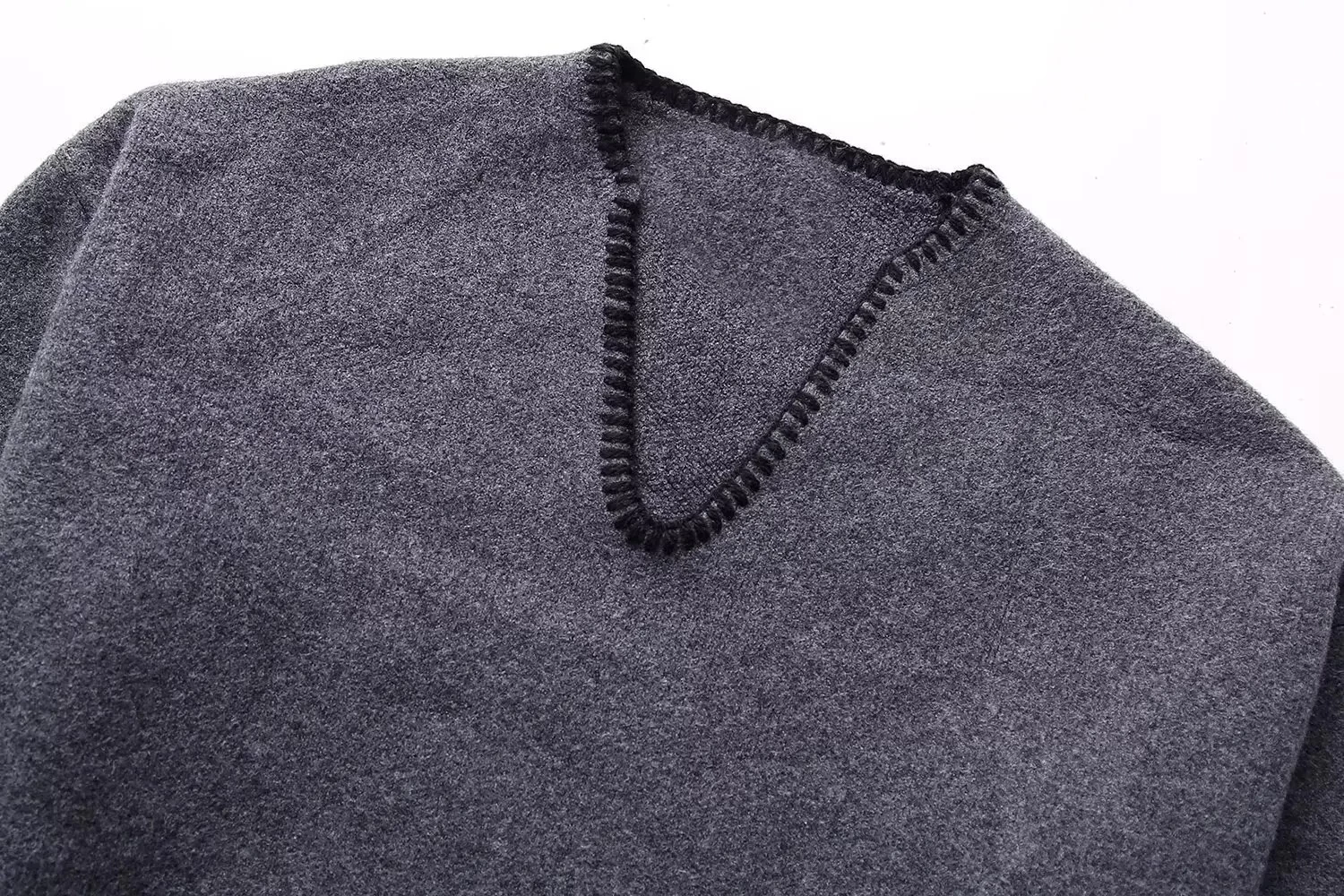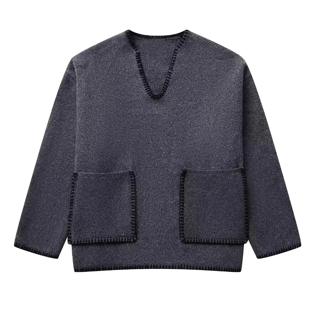 Womens Straight V Cut Neck Kint Jumper With Woven Pockets Dark Grey