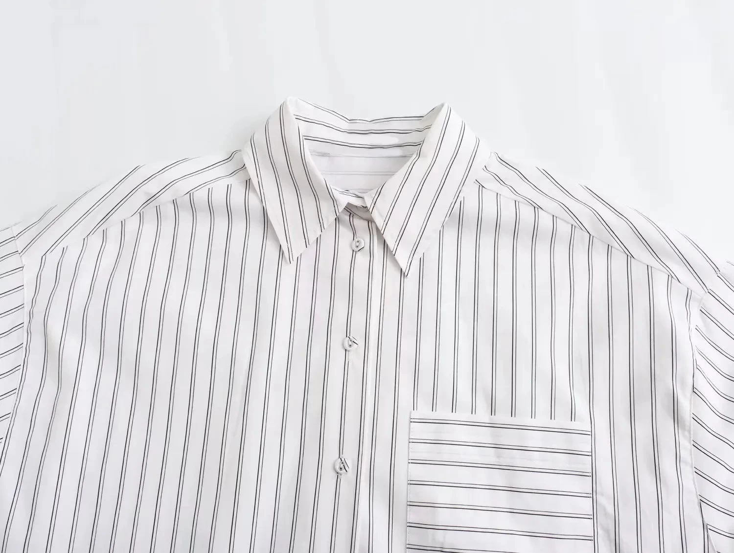 Introducing effortless sophistication with our Womenâs White Stripe Oversized Vintage Lapel Long Sleeve Shirt. Crafted for comfort and style, this oversized shirt exudes a timeless charm with its vintage-inspired design and classic lapel. The long sleeves add a touch of elegance while providing versatility for various occasions. Whether paired with jeans for a casual outing or dressed up with a skirt for a more refined look, this shirt promises to elevate your style effortlessly. Embrace timeless fashion with this wardrobe staple that seamlessly blends comfort and sophistication.